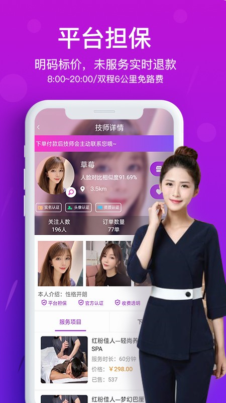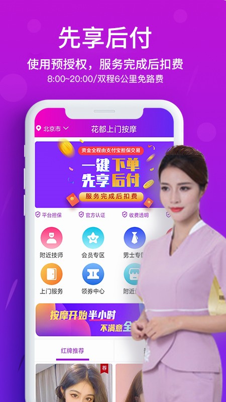 花都上门按摩服务款是一款在线上就可以进行上门按摩的服务平台,在这里拥有超多的上门按摩服务等你来领取;这里有专业的按摩师和各种按摩技师为您提供一站式按摩解决方案、足疗服务及其他一系列的按摩服务项目,