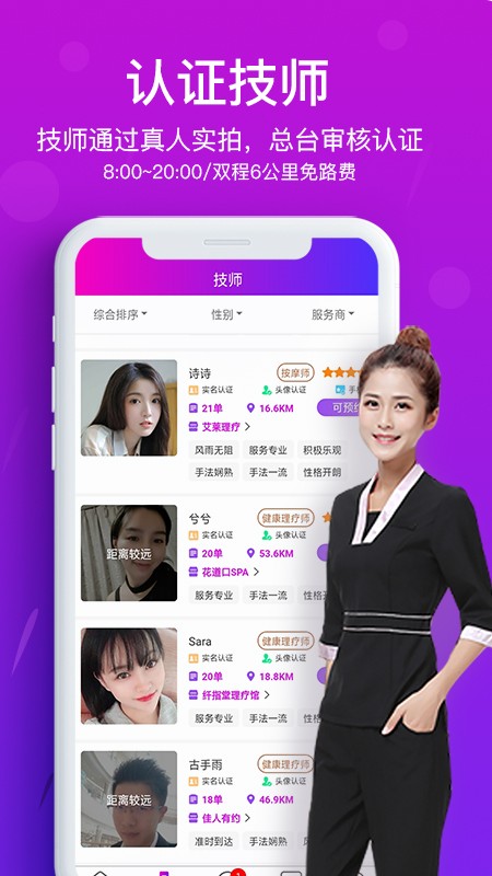 花都上门按摩服务款专业上门按摩类型手机app是为各位用户提供非常方便的上门按摩功能服务的软件,通过该软件我们可以直接选择到最合适的按摩服务。预约之后即可获取上门按摩体验!超多专业的按摩人员等待大家前去了解与挑选,感兴趣的朋友不妨速速下载吧