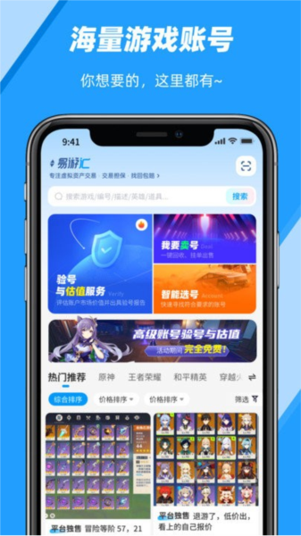 易游汇是一款非常受玩家喜爱的游戏交易平台。在这里你可以自由的选择各种类型的游戏,还有各种各样的游戏资讯可以查看!让你在玩的时候不再担心找不到自己心仪的游戏资源啦,感兴趣的玩家快来下载吧!