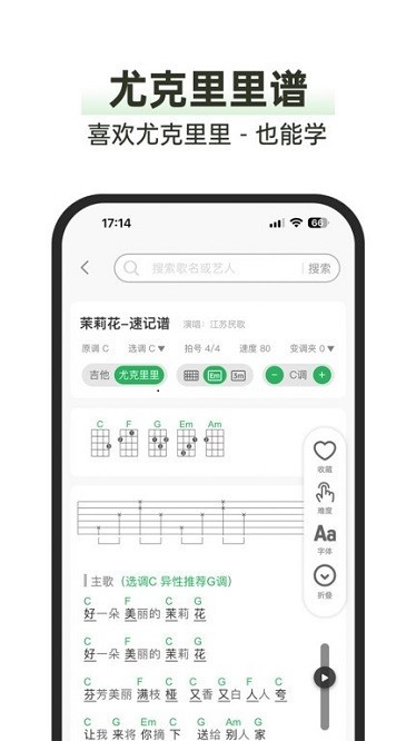 提供了歌词查询服务,方便用户查阅到相应的歌曲名称和演唱风格;此外,用户还可以通过点击屏幕上方的“放大镜”图标快速翻转页面找到所需的歌词类型(如:流行词汇),并在弹奏的过程中使用手指拖拽即可调整速度。