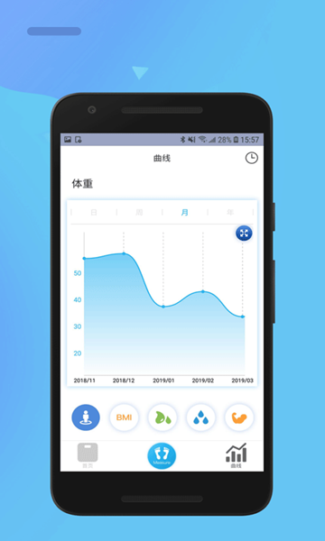 【体重趋势】全面展示你当前的BMI指数,根据你的身体指标变化量化你的减肥、增重、产后的睡眠情况,让你清晰看到自己目前所消耗的热量的摄入和热量的支出。