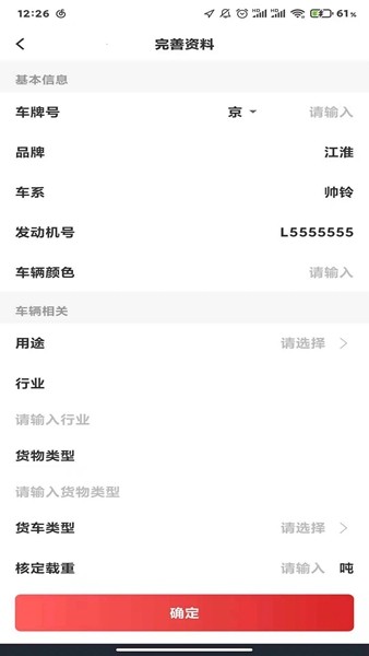 2、接着完善本人资料提交申请之后等待客服审核完成就能成功登录江湖卡车啦。