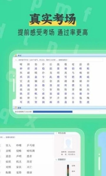 普通话测试自考王app提供全真模拟试题进行训练练习等操作;在这里用户可以自由选择需要测评的内容开始答疑解惑使用更方便简单随时随地都可以线上快速完成相关作业检测了解详细信息详情等等!