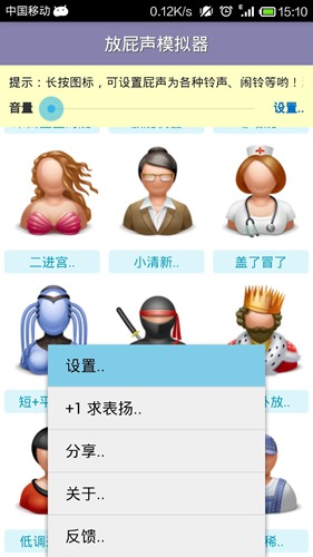 放屁模拟器可以帮助用户模拟出声音,一款非常好玩的音效模拟器软件,在手机上就能体验到真实的声音效果了,让你享受更加震撼的听觉盛宴,感受不同声音带来的乐趣,可自由选择使用哦!欢迎需要的朋友下载体验~
