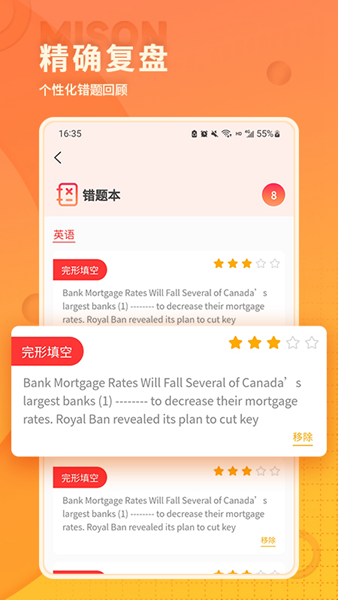 对于自己不会做的所有题目都能及时查看到收藏夹当中方便你重点复习巩固记忆。