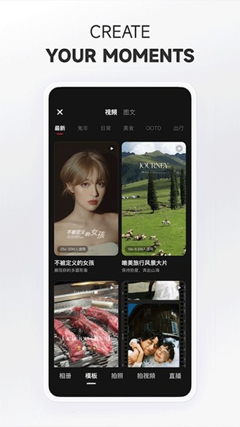3、视频拍摄-支持多段拍照模式直接编辑短视频,轻松生成高清无码vlog;