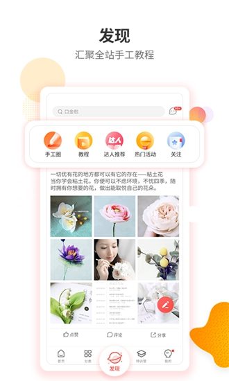 手工客中国领先的DIY爱好者社区app是一款原创、有趣的手工社区。在这里,您可以尽情展示自己的创作作品,与他人分享,同时你也能找到同城的优秀手工达人,一起学习和创作各种类型的小技巧,提升个人能力。