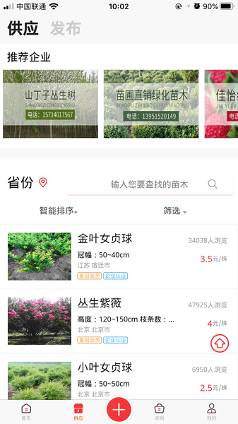 中国苗木网app是一款非常专业的苗材交易平台,该软件内置了大量的苗农品种信息、苗源资源和行业资讯等服务内容于一体。通过这款软件用户可以实时的掌握到最新的苗业市场动态,了解行业动态变化,并且还可以在这里找到各种各样的苗商供求消息以及相关产品供应订单进行买卖合作操作!同时中国苗木网app还为广大的用户提供最全面的服务功能来帮助大家更好的实现苗虫采购需求与销售渠道对接等等!