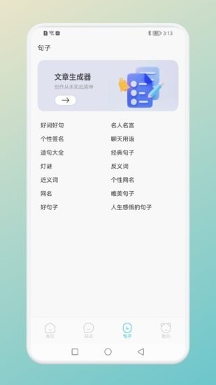 一言一句app是针对于文案创作者打造的一款朋友圈段子分享与创作平台,该平台的素材非常丰富,包含了诗词歌赋、句子配图、文章插画等多个方面资源。用户可以在平台内发表自己的想法和感受,并通过发布自己的心情或者想法来吸引更多人来阅读。