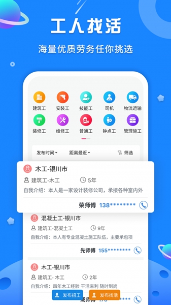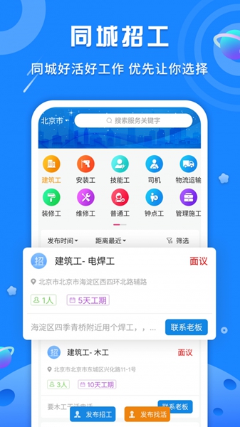 易招工app是一款专门为新疆国邦建筑施工队打造的手机软件,该app主要是服务广大工人以及工人使用,在这里用户可以进行在线招聘求职、找工作等等操作。同时在易招工app中企业和工人可以通过这个平台来发布自己的招聘信息到平台上哦!需要的朋友欢迎前来下载使用!