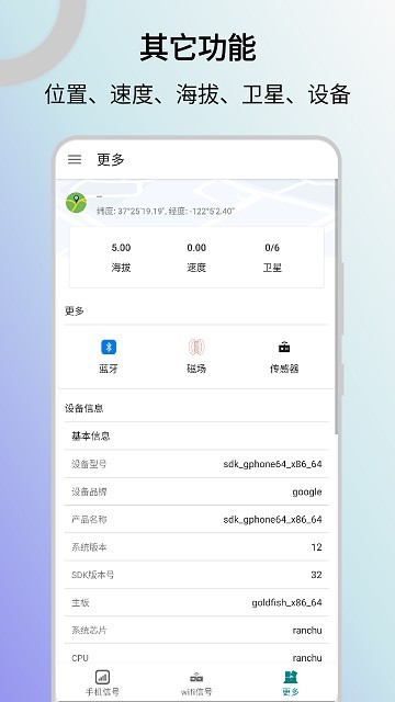 信号检测仪可以为你精准的识别当前网络信号是否正常,你可以直接点击查看详细的信息。同时这里还为大家准备了信号检测、测速等工具,让你了解自己的手机网络连接情况。而且还可以通过测试来判断网络的稳定性。欢迎有需要的朋友下载使用!