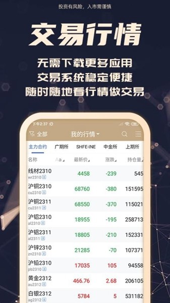 兴业期货App官方版作为您值得信赖的综合性综合性平台,集投资咨询、交易服务于一体,旨在为投资者提供全面的投资信息和理财解决方案。用户可以随时随地了解市场动态变化,及时掌握交易详情并进行风险评估等操作。此外,app还支持多种安全措施保护用户隐私数据,确保交易过程的安全可靠。
