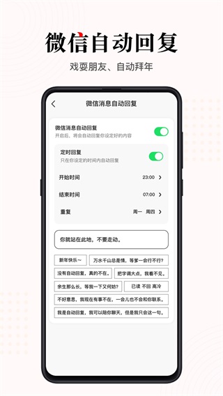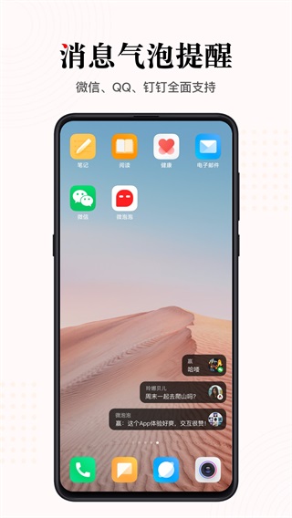 微泡泡是款简单方便的微信回复方式便捷软件,开启之后我们就能快速获取到我们的聊天消息。帮助我们解决各种问题和体验超多功能选择适合我们进行使用和分享!想要试试本款实用的手机app的朋友不妨速速下载吧!