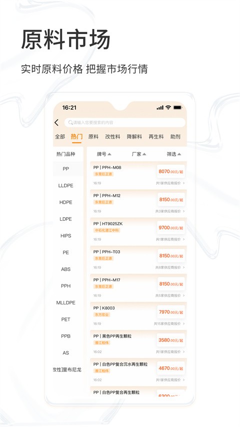 金塑宝app是一款非常实用的线上塑料商品交易服务平台,该软件专为广大用户提供最专业的塑料原材料采购和批发市场行情分析等功能。该平台致力于通过先进的技术手段,为客户提供了丰富的塑料原料产品和服务选择方案,同时还支持在线下单购买各种塑料材料,满足不同客户的需求。