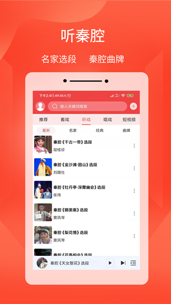 西部秦声app是专为喜欢西北秦腔的用户打造的一款听歌交友软件,在这里能够轻松收听秦腔的历史文化知识内容。各种戏曲节目在线免费播放观看体验更舒适方便用户进行查看了解!