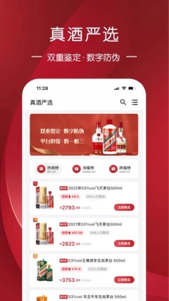 9.“正品保障”专区中会有很多的正品酒,并且都是经过严格的检测才能够出售的;