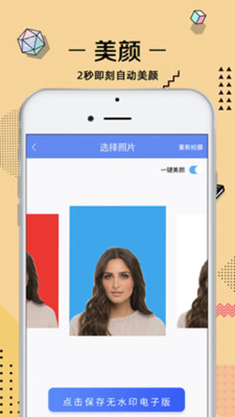 美颜证件照拍摄软件是专为广大证件照相机用户量身打造的手机证件照编辑工具。