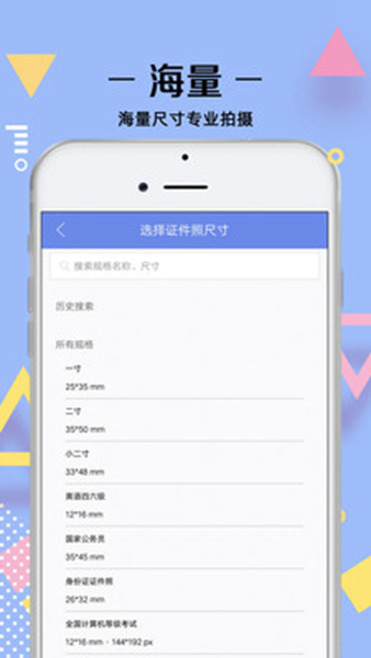 【超长尺寸】提供多种尺寸模板可选,包含常用寸照、高考报名、英语四六级考试、各国签证等各种类型标准尺寸,
