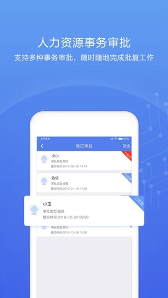 人事邦能够帮助你管理自己的员工,并且在这款软件里面可以进行考勤打卡以及审批等服务!让你随时了解自己的上班状态和工作详情。而且还可以在这里与他人分享自己每天的工作情况或是想法等等!