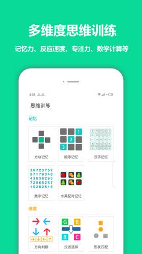 根据儿童的不同发展阶段定制个性化思维训练项目,包含:大小、速度、空间、空间、时间、统计、空间感官、反应能力等等。