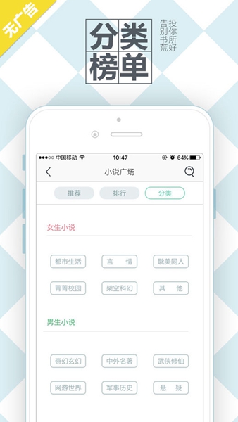 1、百万小说电子书随便看,玄幻奇幻小说、都市言情小说、武侠仙踪小说、青春校园小说、穿越架空小说、惊悚悬疑小说、历史军事、耽美同人小说、官场权势小说、科举灵异小说、经典图书等各类小说应有尽有,更重要的是阅读全程无广告。阅读背景颜色、字体、排版方式任君切换,给您完美的用户体验。