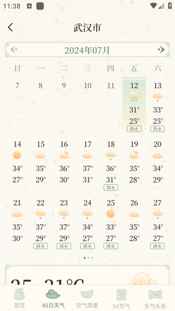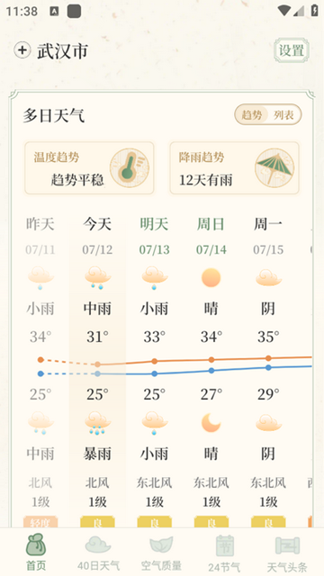 实时掌握24*15天气状态,当天天气温差提前预防。