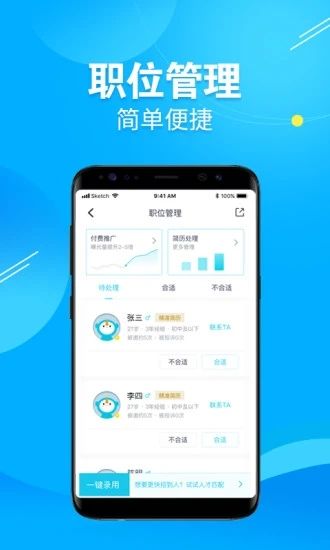 【快速响应】职位更新快,及时通知您附近优质人才,高效便捷完成简历投递任务。