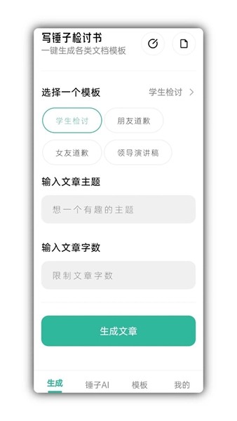 检讨书生成器是款专为用户打造的检索神器,支持多种模仿和修改参数功能使用非常便捷,输入关键词就能一键快速获得相关结果哦,满足不同用户的审美需求哟,欢迎喜欢的朋友下载!