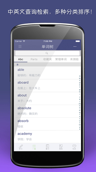 内置即时通讯工具,方便用户随时随地的交流和分享学习心得。此外,软件还具有强大的搜索功能,输入单词或者句子的关键字即可迅速查找相关内容。
