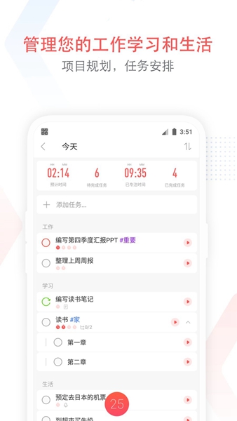 专注清单tododolist是一款专为学习、工作等场景打造的高效管理应用,让您不再错过任何重要的日子。您可以使用专注清单todoToDo制定每日学习计划或复习计划,通过专注清单番茄计时器来帮助你提升时间利用率、专注力以及专注度,让你成为真正的学霸。