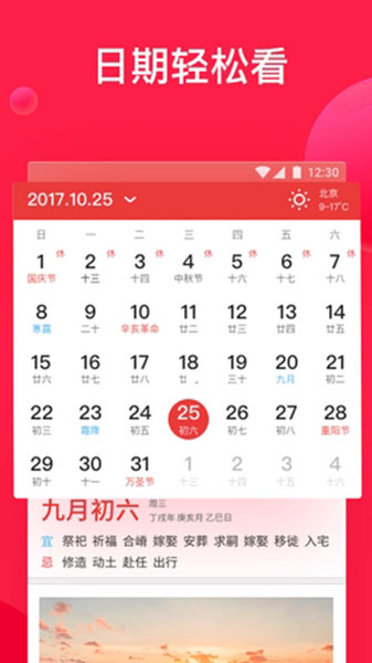 2.【法定假期】:法定假日标注提醒,节日节气道道全。