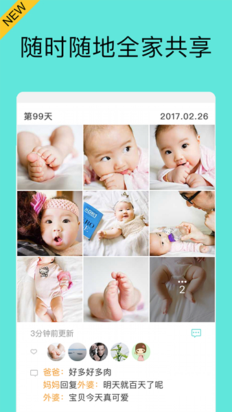 可通过“宝贝”,一键添加宝宝信息至“宝贝”社区内,邀请亲友共同参与宝宝的精彩时光。