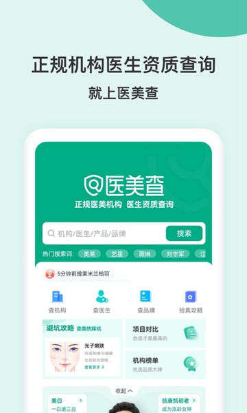 医美查app是一款非常不错的手机在线医疗服务软件,在这里汇集了超多专业的医的美机构信息和资讯内容等你来查看了解哦,还可以线上进行咨询医生问题哟,需要的小伙伴们快来下载医美查试试吧。
