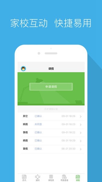 智慧家校家长端由禅境科技股份有限公司专门为广大家庭打造的教育学习软件,家长们可以使用这款软件及时接收到学校的通知和各种重要的消息通知。同时还可以在这里进行学生信息管理、请假审批等服务操作!