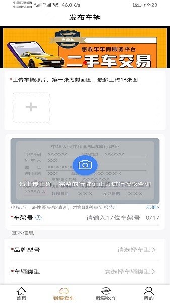 惠收车是贵州车拍网络司新推出的二手车查询交易服务平台app,惠收车是贵州省汽车市场协会官方合作应用,支持全国范围使用。用户通过惠收车在线快速进行车辆信息验证、评估等操作!需要的用户快来下载吧。