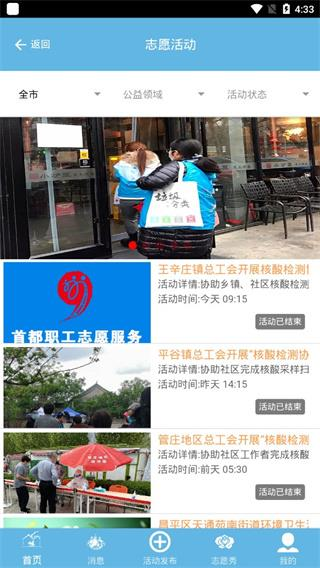 App是一款精心设计的志愿者服务平台软件 北京市职工志愿app是专为北京市职工群众打造的手机服务软件,在这里有各种各样的志愿者信息内容。可以进行报名参加活动和参与各项公益活动操作等功能;还可以在线咨询客服了解更多资讯动态详情等等!