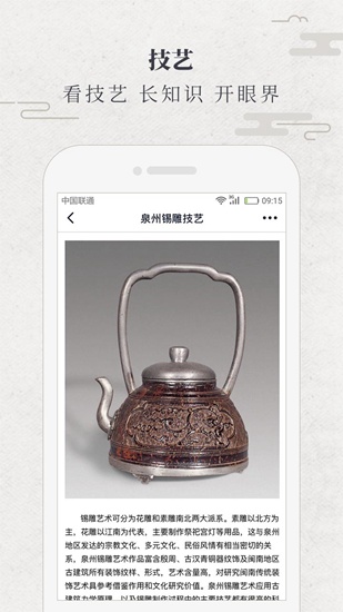 华夏匠人app能够传承手工艺文化,这里有专业的匠人和设计师在线为你进行鉴定,让你可以了解各种匠人的作品,还可以在这里找到自己喜欢的艺术品和大师亲自来欣赏。