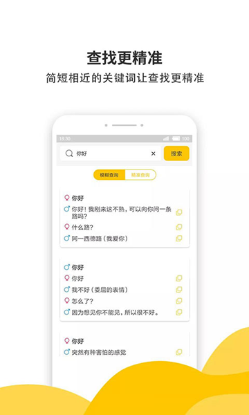 2、恋爱宝典:恋爱聊天话术搜索功能,帮助您轻松找到聊天回复答案;