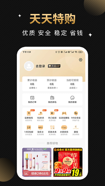 1、丰富多样的电商平台的内部福利都可以自由查看并且可以随意的提现收益。