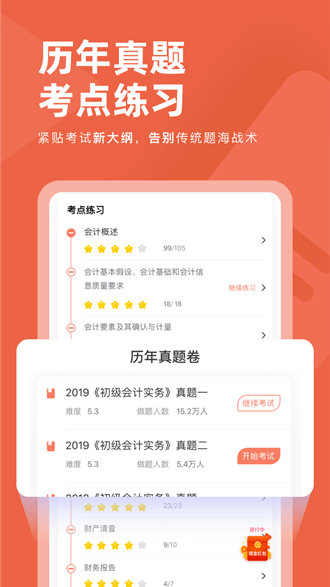 会计对题库app是专为想要考初级职称的考生而设计的备考刷题软件,该软件涵盖了会计考试的所有知识点内容。其中包含的学习功能非常强大,包括章节练习、历年真题等多种实用的功能模块供用户选择使用。
