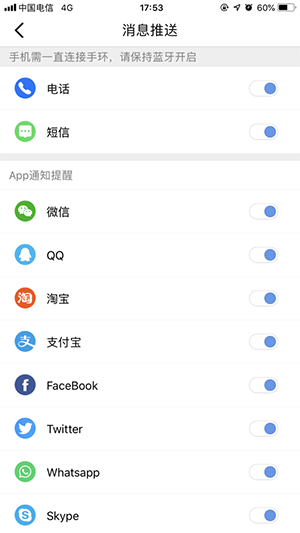 久坐提醒、短信通知、勿扰模式、震动提醒、邮件推送(微信、QQ消息)。