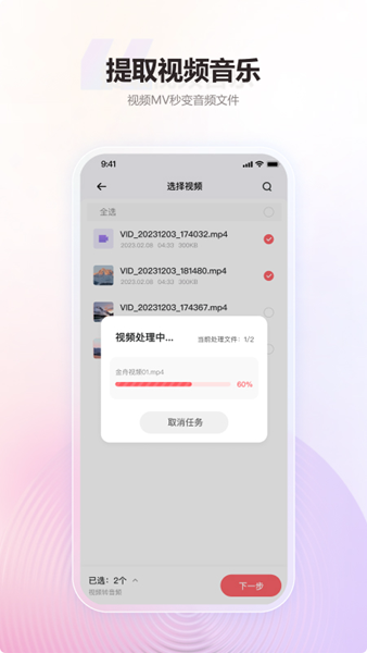 9、支持从视频中提取mp3/aac/wamxsdk/flac/opus或更多音频格式。