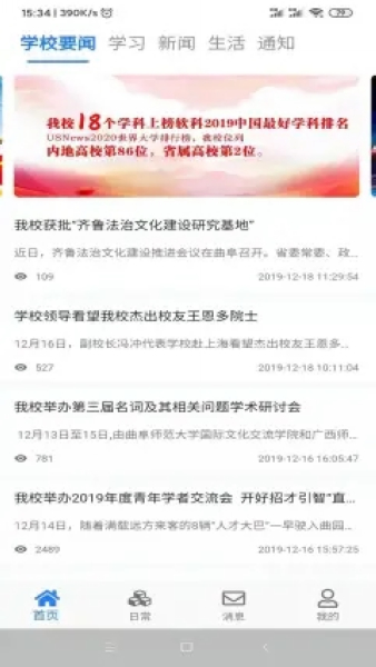 智慧曲园是曲阜师范学校所打造的校园软件,专为曲靖学院的学生量身打造而成,在这里能够查看到校内的最新资讯和各种通知信息等。学生们可以轻松了解自己在学校的各个动态以及活动时间表等等!