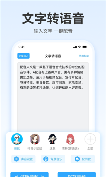 界面简洁明快,新手也可以快速上手,享受专业的配音服务。