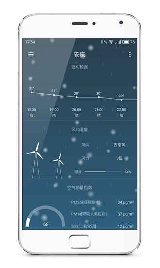 逐时预报:动态展示24H天气状态,提早预防昼夜冷暖变化;