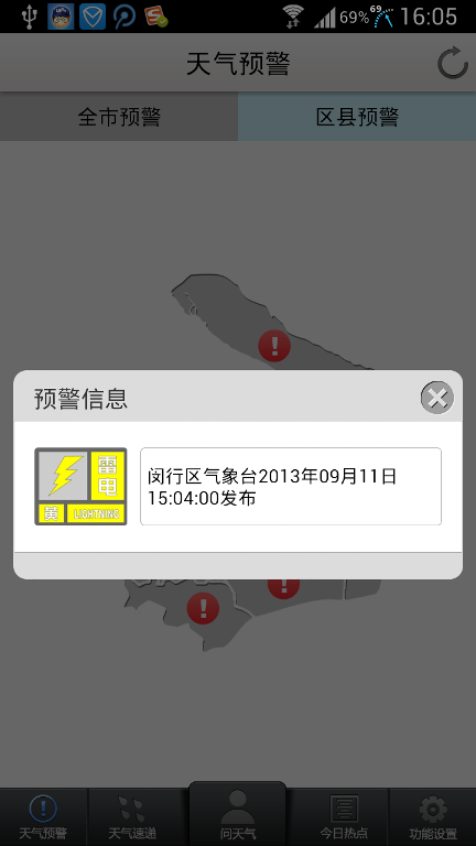 异常天气及时提醒,帮助您及时做好防范措施,预防恶劣天气,保障您的生命财产安全!