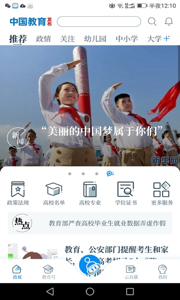 中国教育发布由教育部新闻办公室运营维护的教育信息软件是一款专门为广大的全国小学生打造的网上校园综合服务平台,在该平台上用户可以了解到最新的教育资讯以及各种政策动态等内容哦,需要的朋友可以来西西下载中国教育发布由我国教育部门推出的教育相关业务办理系统使用哦!