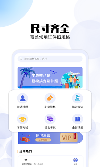 1、海量尺寸选择,不管是哪种尺寸大小都可以找到对应的标准尺寸供您挑选并设置好自己的专属尺寸信息就可以将你的证件照通过平台即可获得所需资料,