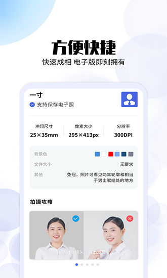 界面简洁明了,即使没有专业的技术基础,也能轻松拍出专业合格的证件照;