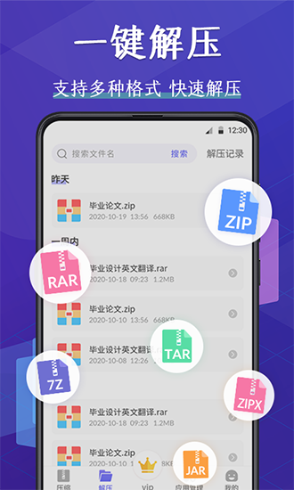 zip文件管理器一款超级好用的主要为用户提供对手机本地进行压缩的工具软件,软件内置强大的功能可以帮助您在手机端轻松处理相关数据信息更好的使用APP,自带超强的加密技术为您的数据保驾护航安全隐私不泄露您的隐私。